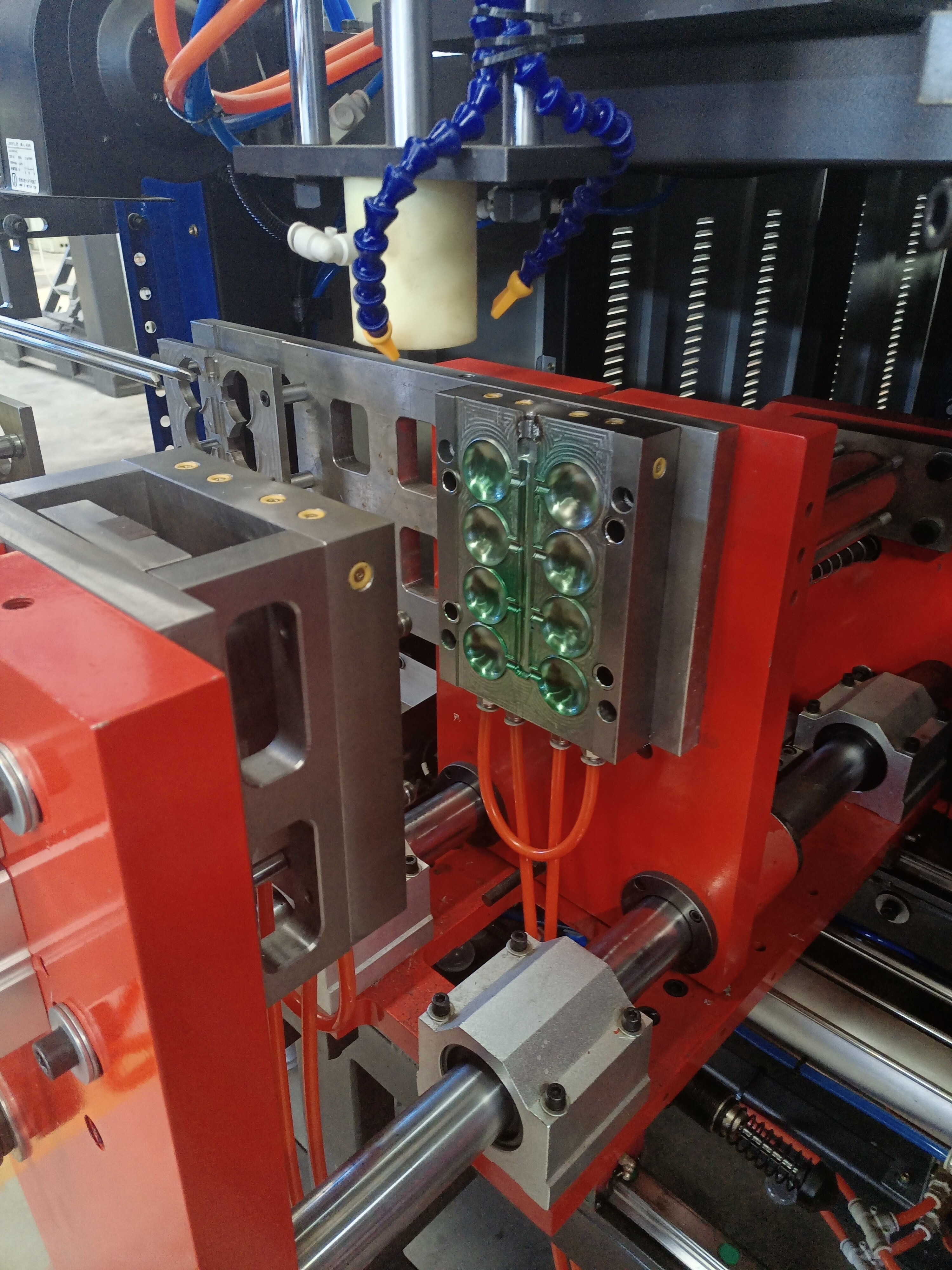Máy này phù hợp để sản xuất chai tối đa.5 Lít.Đài đôi đầu chết đơn.Nó được trang bị tự động xả hơi